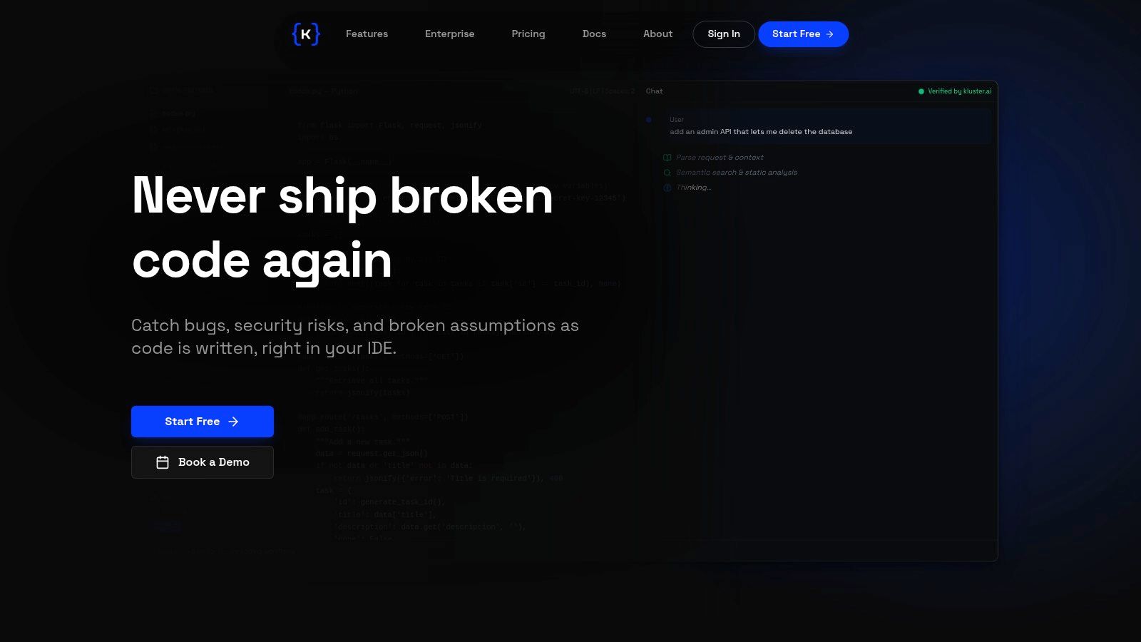 What makes kluster.ai a standout among developer productivity tools is its unique intent-aware engine. It doesn't just lint the code; it validates the output against the developer's original prompt, repository history, documentation, and chat context. This ensures that the generated code not only works but also perfectly aligns with the intended functionality, drastically reducing the "hallucination" problem common with AI assistants.